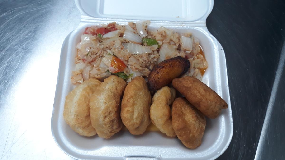 Stewed Saltfish & Fried Dumplings